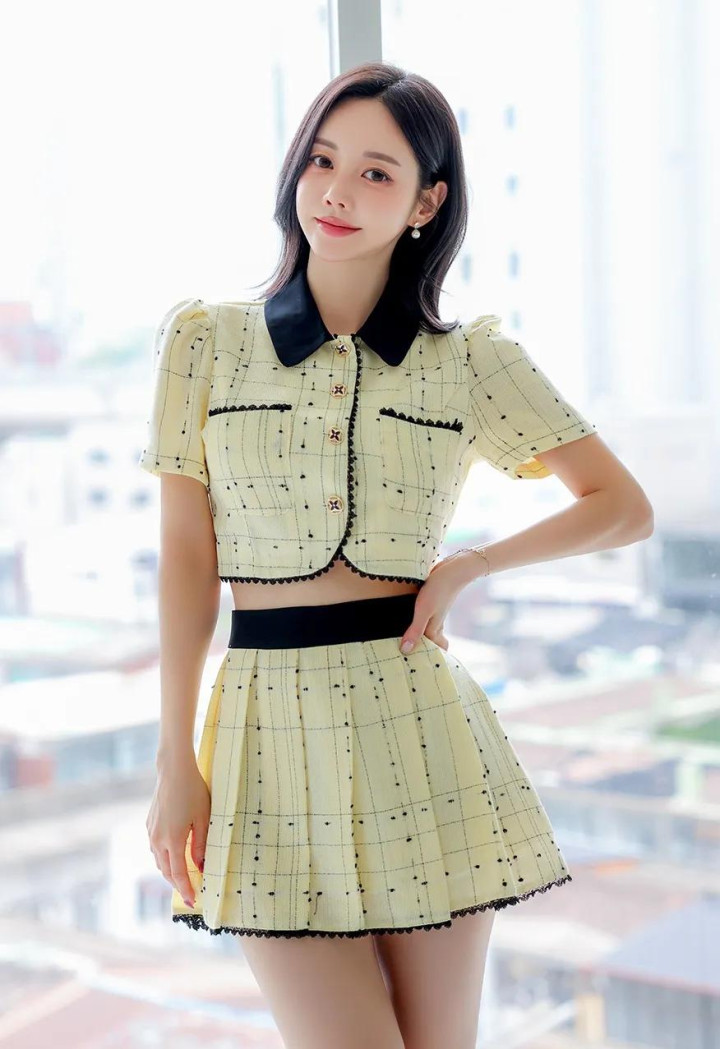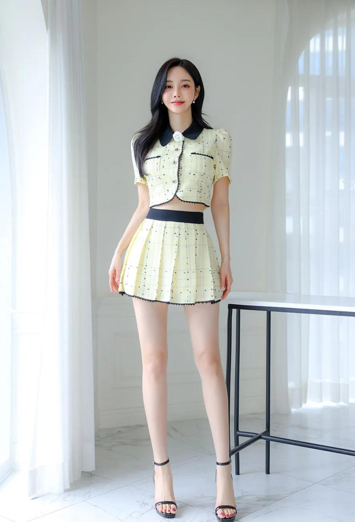 青春甜美时尚黄色套装短裙绝美女神高清图集